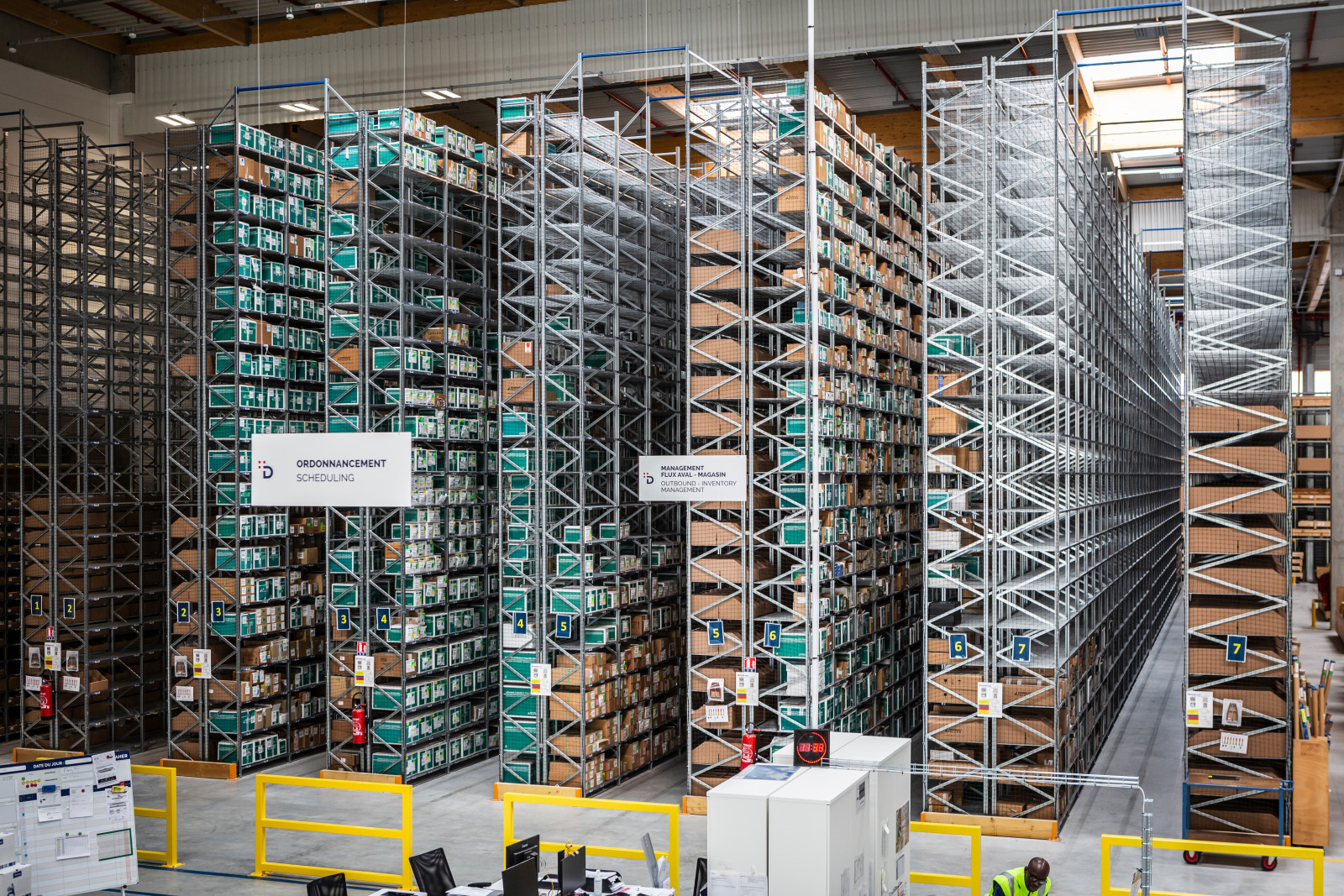 Avec une précision en intérieur à 30 cm près grâce à la technologie indoor Ultra Wideband, la solution est constituée de tags positionnés sur les éléments mobiles qui permettent de quadriller une zone et par l’intermédiaire d’une “box” (comme pour une box internet) de relayer les informations vers l’écran de l’opérateur logistique. Cela lui permet de géolocaliser immédiatement la clayette concernée et surtout les colis qu’elle contient.